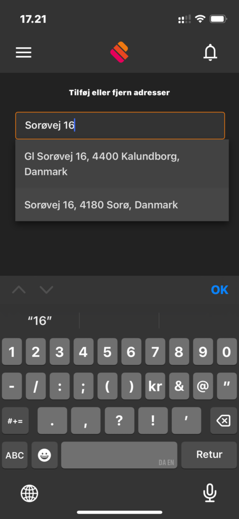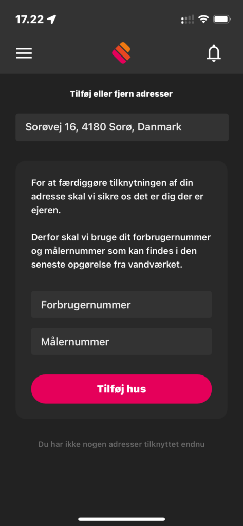Når du så har oprettet en bruger, så kan du tilføje en eller flere adresser. Du søger blot efter den, vælg den korrekte adresse