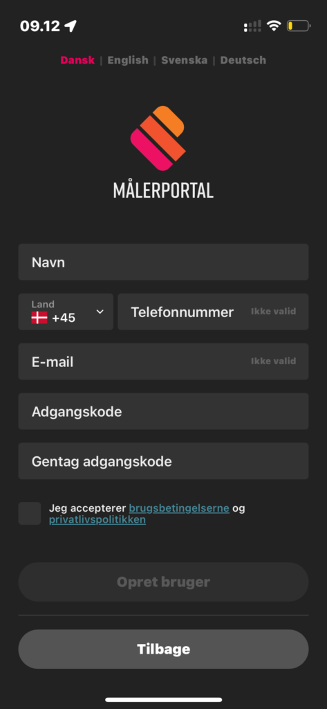 Vi skal nu oprette en bruger, der skal du bruge en email adresse, og et telefonnummer, og finde på et godt kodeord du ikke bruger andre steder.